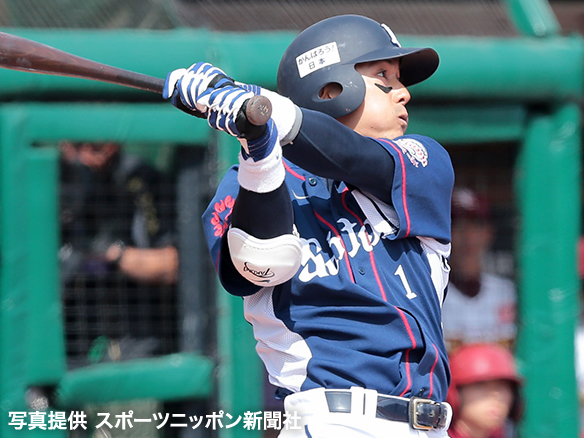 5番 藤田 左安 レフトへのヒットを放つ 1塁 |