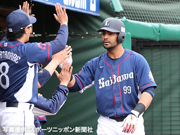4番 メヒア 左中本 2-1から外角高めのストレートをフルスイングすると、打球は左中間スタンドに着弾! 第3号ソロホームラン! 楽3-7西 ![]() 3