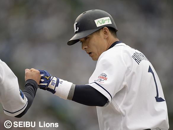 1番 秋山 左安 レフトへのヒットで出塁 1塁 |