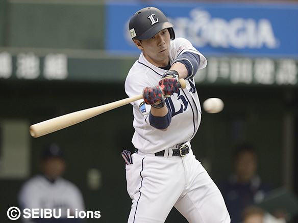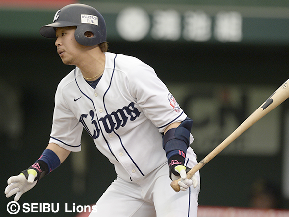 レフトへチーム初安打を放つ栗山