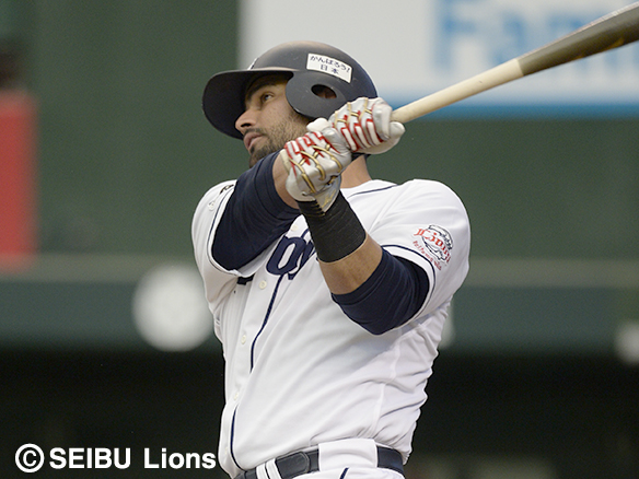 投手 マエストリ 5番 メヒア 左中本 1アウト2塁の1-2から真ん中に入ったボールをすくい上げると、痛烈な打球が左中間スタンドへたたき込まれた!目覚めた大砲の一発に、こどもたちも歓声を上げる! 西5-0オ ![]() 5