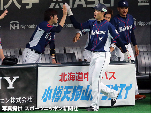 6番 レアード 左安 2アウト1,2塁からレフトへのヒットで出塁 |
