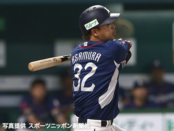 3番 浅村 中安 センターへのヒットを放つ 1塁 |