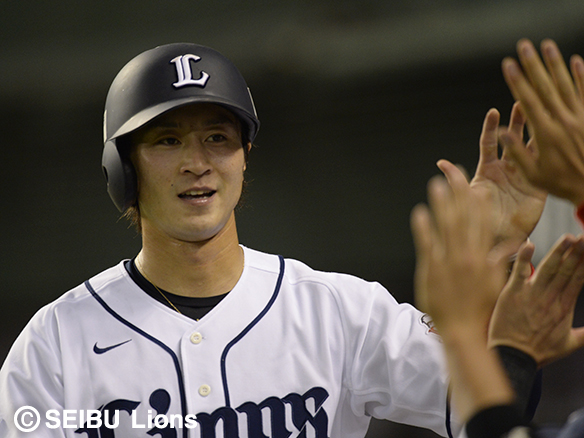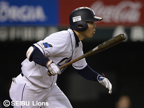 2番 栗山 右安 ランナー2塁の2-2から引っ張ったゴロは、一二塁間を抜ける!2塁ランナー・金子侑が快足を飛ばして生還した!ライオンズ先制! 西1-0ロ 1塁 ![]() 1
