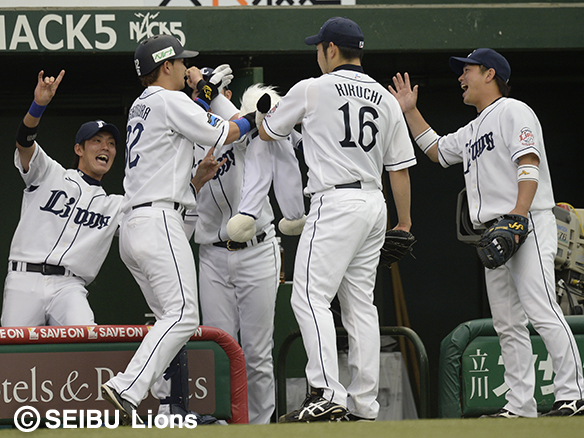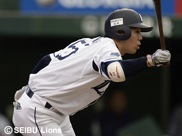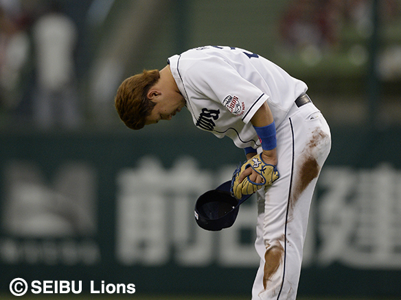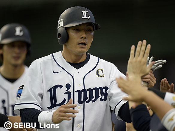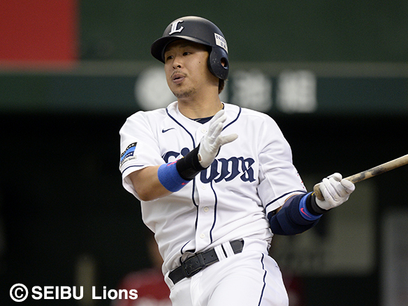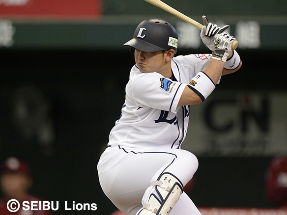 2番 栗山 左中本 2-1から外角のストレートをはじき返した打球は、左中間スタンドに突き刺さる!キャプテンの一発で同点に追いつく! 西1-1楽 ![]() 1