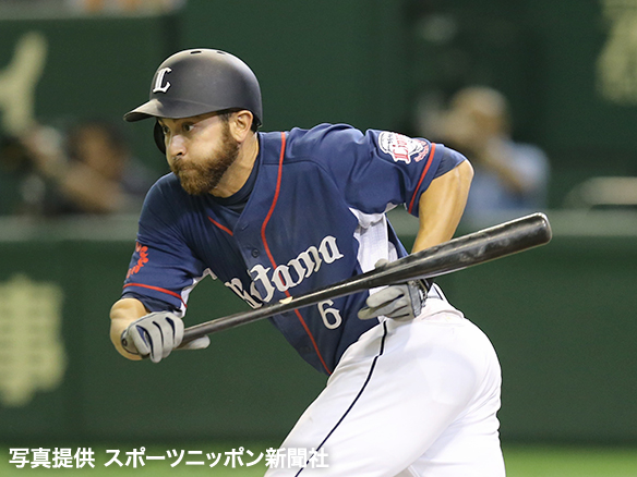 1番 秋山 中安 センターへのヒットを放つ 1塁 |