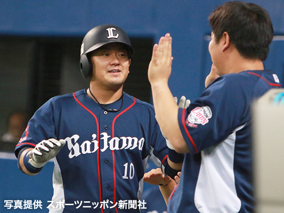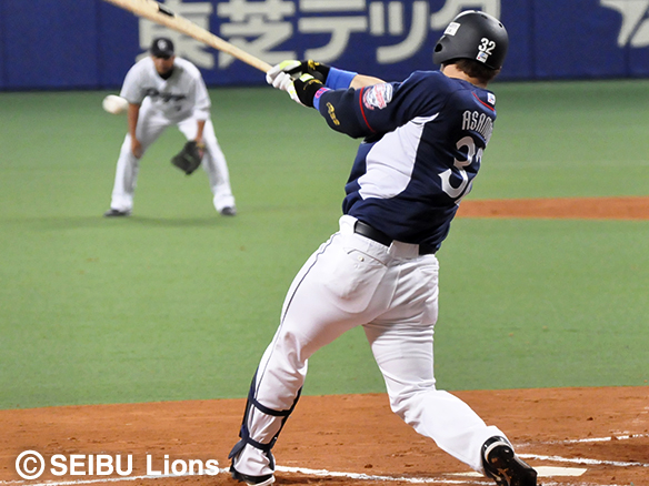 浅村は外角の変化球を叩いて先制タイムリーを放つ!