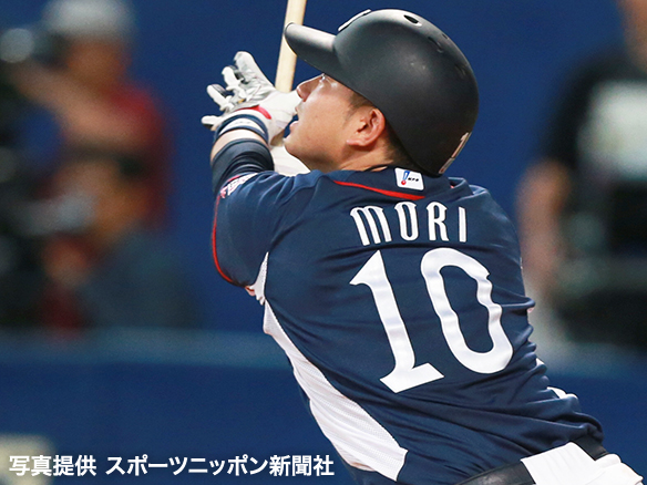 投手 山井 6番 森 右本 ウント1-1から内角低めのストレートをすくい上げると、高く舞い上がった飛球がライトスタンドへ飛び込んだ! 10号ソロのホームランで勝ち越し! 中1-2西 ![]() 0