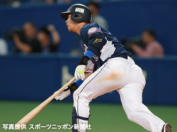 3番 浅村 中安 センターへのヒットを放つ 1塁 |