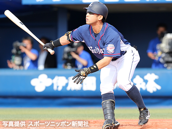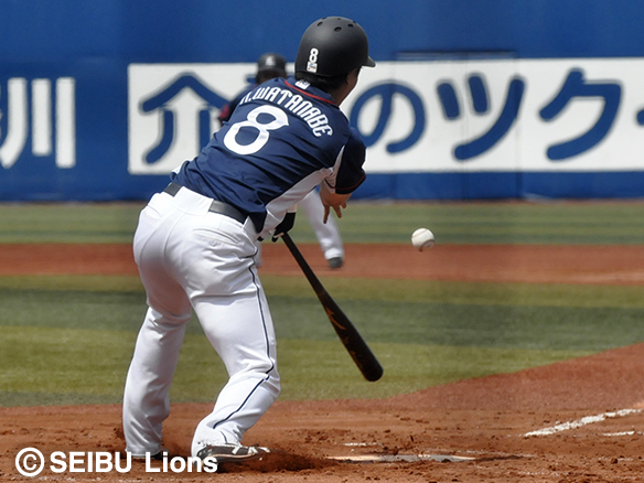渡辺直が外角の球に食らいつき先制タイムリーを放つ!