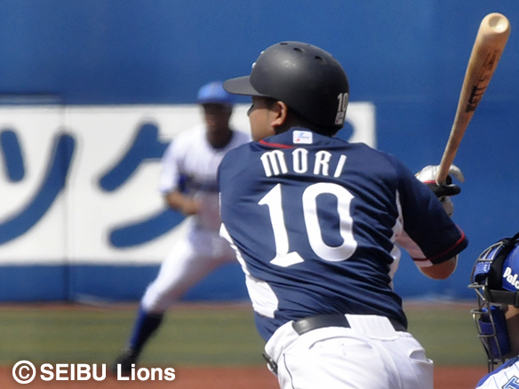 6番 森 左安 1アウト1,2塁の1-2から三遊間を破る打球を放つ!レフトへのタイムリーヒットでライオンズ勝ち越し! D1-2西 1,2塁 ![]() 1
