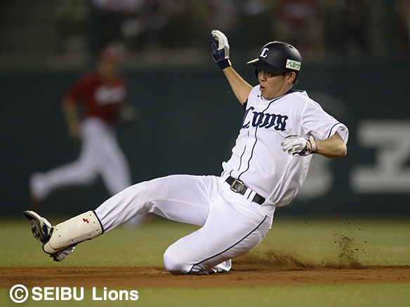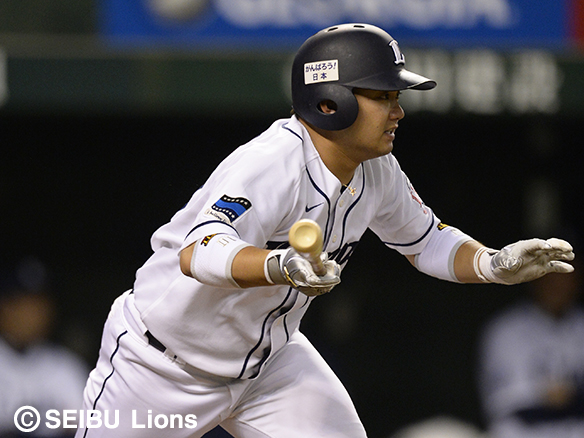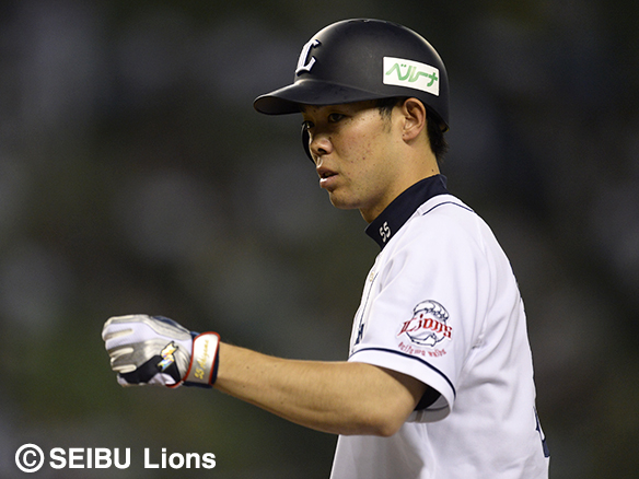 1番 秋山 左安 レフトへのヒットで出塁 1塁 |