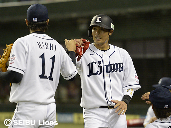 秋山は左前安打を放ち早くも複数安打!