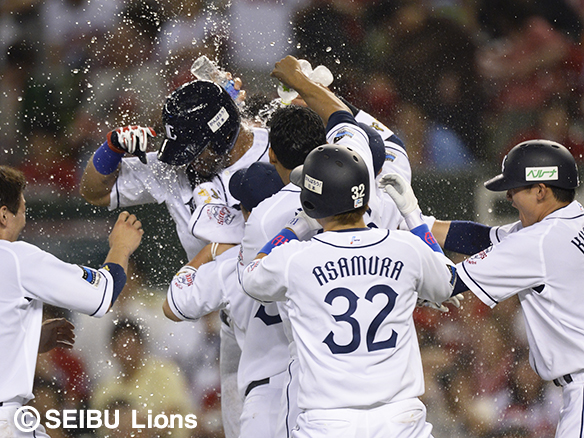 サヨナラ打を放ったメヒアは手荒い祝福を受ける!