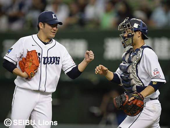 最後を締めた高橋朋は笑顔で炭谷に駆け寄る!