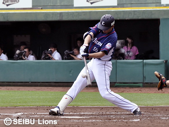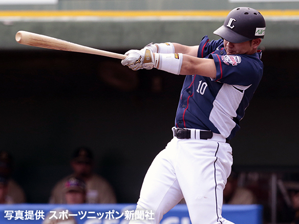 1番 秋山 左安 レフトへのヒットを放つ 1塁 |