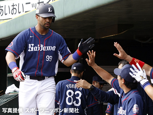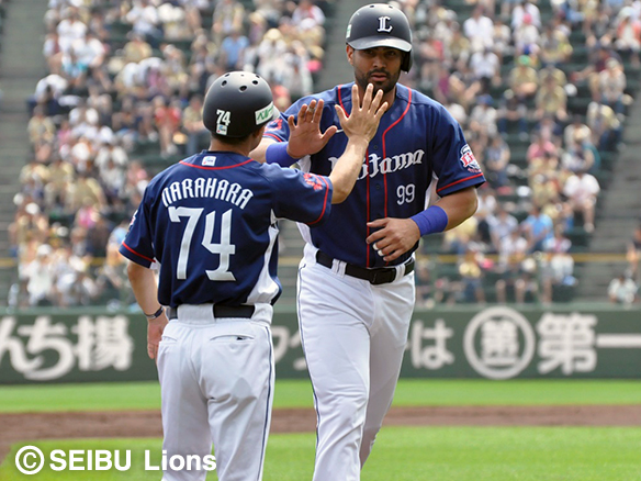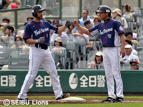 1番 秋山 左安 2アウト3塁の1-1から力まずに流し打ちし、ライナーがレフト前で弾む!タイムリーヒットで追加点を挙げる! オ0-3西 1塁 ![]() 0
