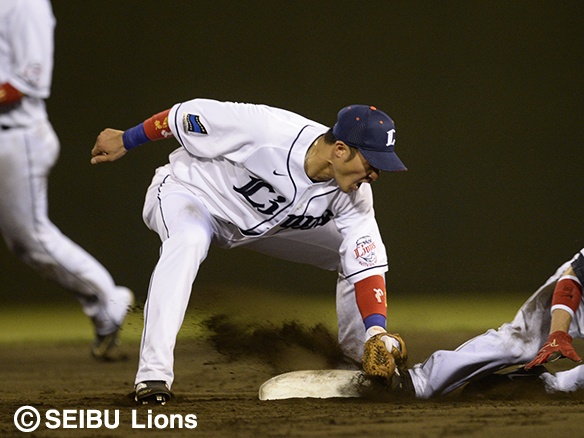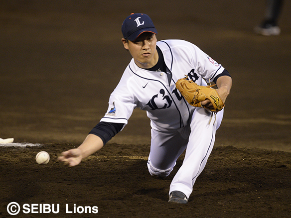 牧田は高谷の打球を処理し素早く3塁へ送球!