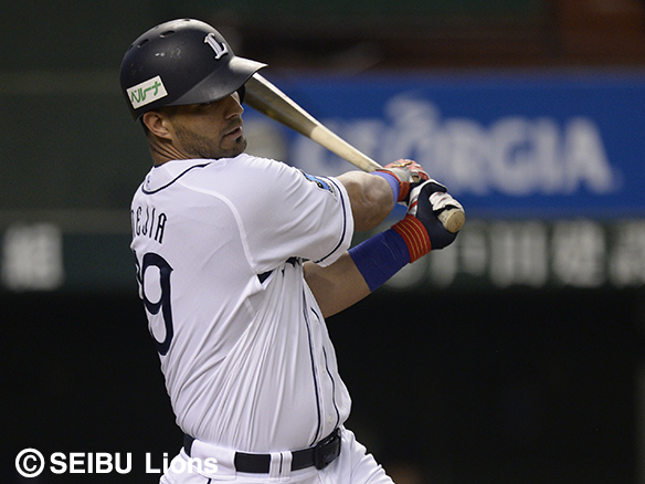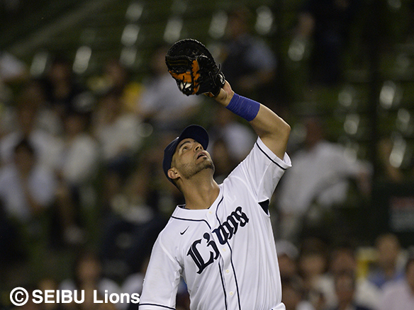 5番 メヒア 右安 2アウト1,2塁の2-1から外角のボールを打ち返し、ライトへのタイムリーヒットとなる!ライオンズ先制! 西1-0ソ 1,2塁 ![]() 1