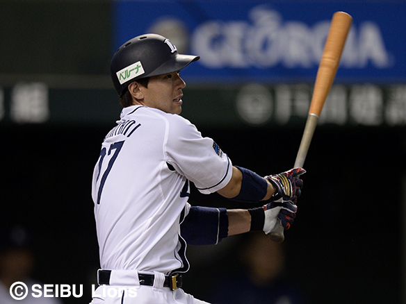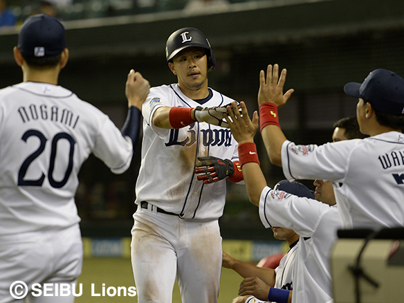 16試合連続安打を決めた秋山はこの回2安打目を放ち好調キープ!