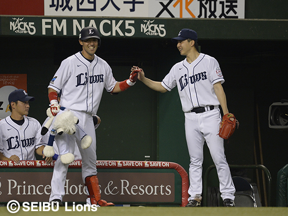 7番 木村文 左本 1-1からストレートを引っ張った打球は、鋭いライナーとなりレフトスタンドへ突き刺さる!2試合連続となる4号ソロホームランでライオンズ同点! 西2-2ソ ![]() 2