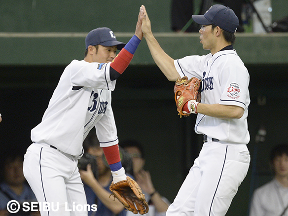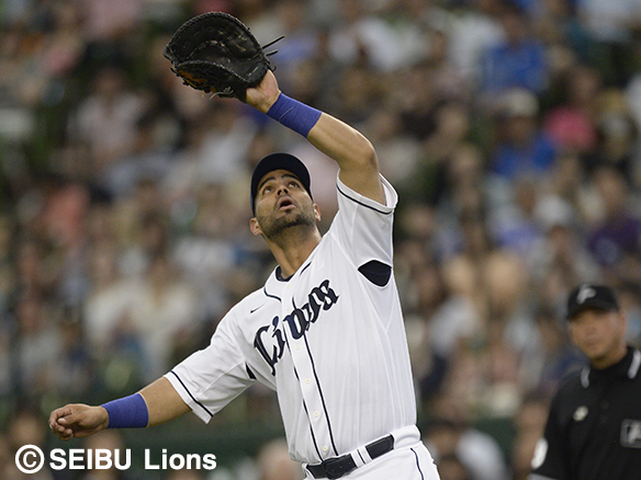 7番 レアード 右邪飛 ファウルフライを木村(右)が捕球してバッターアウト 3アウトチェンジ |