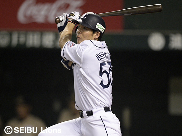 秋山は本塁打を放ち連続試合安打を28に伸ばす!