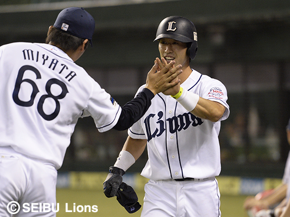 プロ初出場の外崎は脇谷の犠飛で生還する!