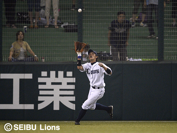宮崎のフライを難なくキャッチする斉藤!