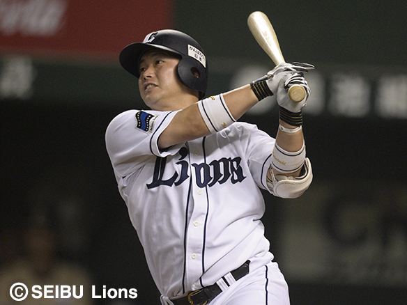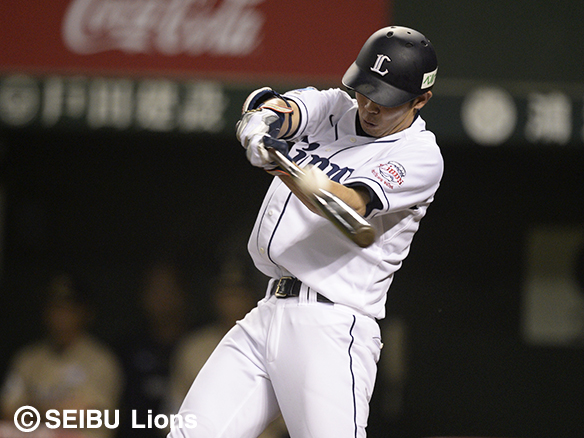 投手 平野 1番 秋山 左本 初球、外角高めのストレートに差し込まれながらも、しっかりと振り切った打球は高く舞い上がってレフトスタンドに着弾。第8号ソロホームランで連続試合安打の記録を28に伸ばす! 西6-12オ ![]() 6
