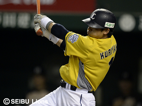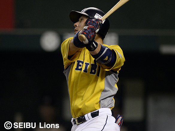 1番 秋山 左安 レフトへのヒットを放つ 1,2塁 |