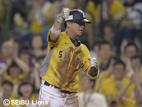 先頭・秋山が3塁打で好機を生み出し、先制のホームを踏む!