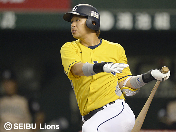 2番 栗山 左安 レフトへポテンヒットを放つ 1塁 |