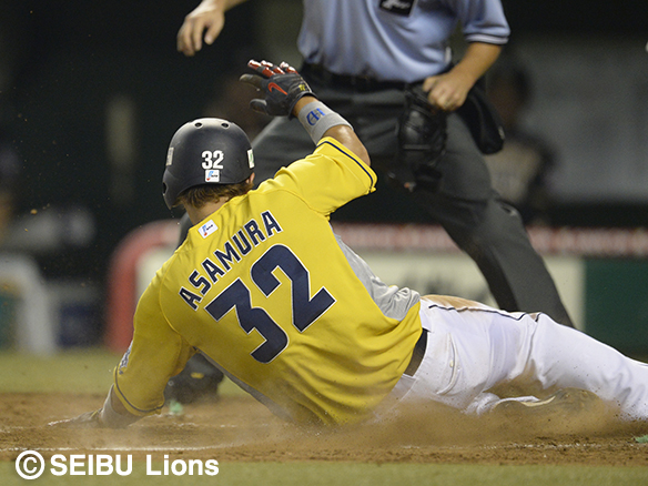 投手 牧田 7番 レアード 三ゴ失 中村(三)の後逸により出塁する 1塁 |