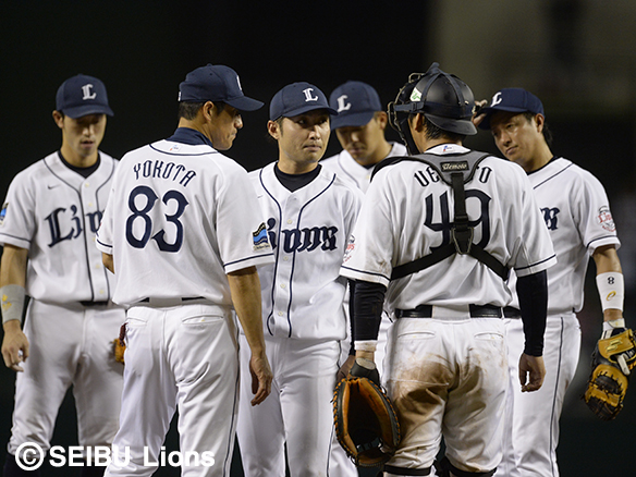 投手 宮西 ピッチャー宮西に代わって白村がマウンドにあがる |