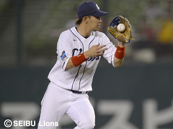9番 外崎 遊併 高めのストレートを打つも6-4-3のダブルプレー 2アウト3塁 |