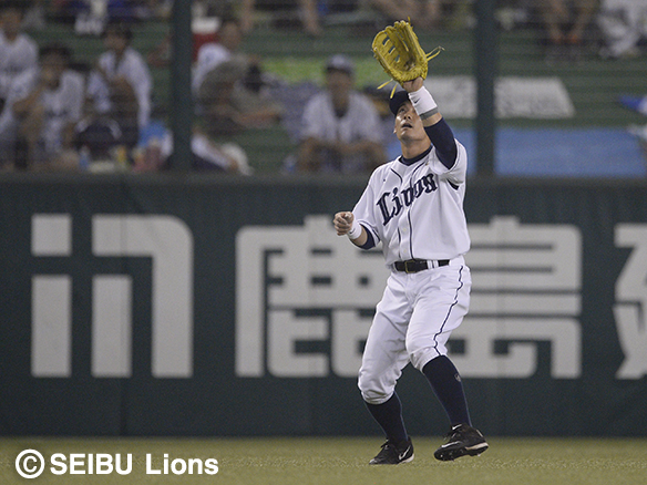 1番 秋山 右二 1アウト2塁の3-1から低めのボールを引っ張った鋭いライナーは、滑り込むライトのグラブをはじいた!2塁ランナーが先制のホームを踏む! 西1-0ロ 2塁 ![]() 1