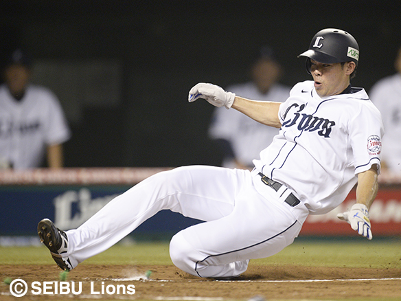 秋山は相手の意表を突く走塁で一気に本塁へ帰還!