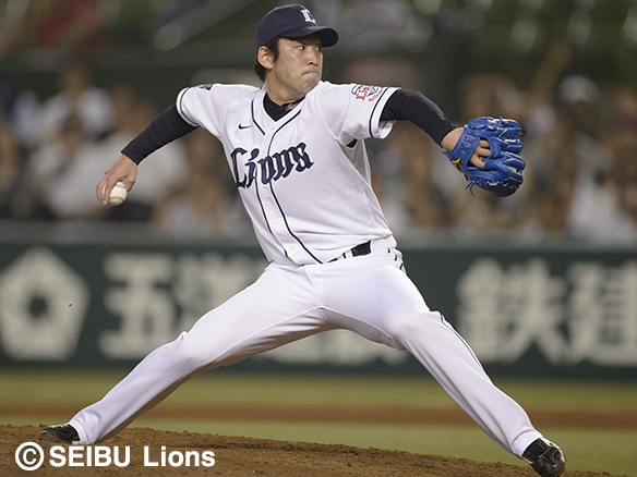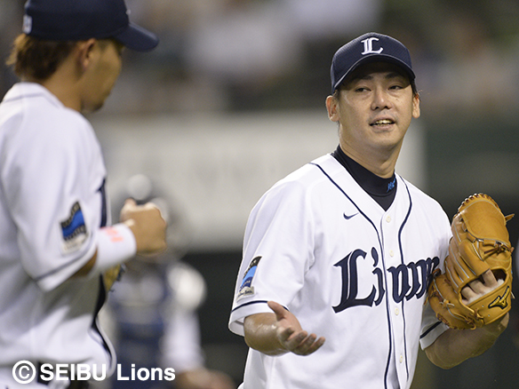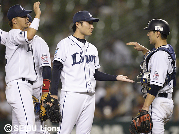炭谷の好送球にも助けられ、十亀はこの回も無失点に抑えた