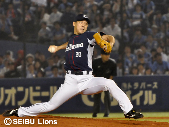 投手 大嶺祐 5番 メヒア 遊ゴ 低めのスプリットを打つもショートゴロ 1アウト |