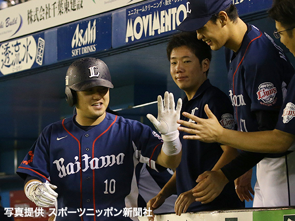 投手 高橋光成 1番 荻野貴 左安 レフトへのヒットを放つ 1塁 |