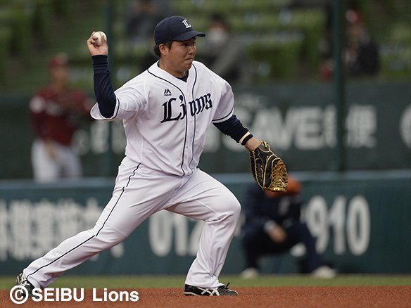 7番 聖澤 遊ゴ 鋭い打球をショート・外崎が正面に回り込んでつかんだ! |