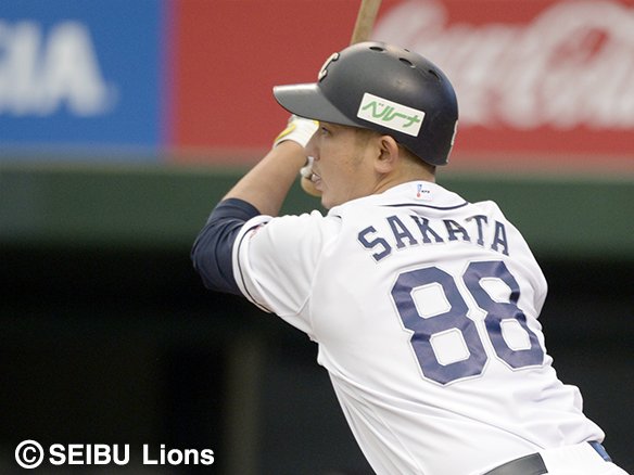 7番 坂田 左線2 外角のストレートを反対方向へ打ち返し、打球がレフトを襲う! |