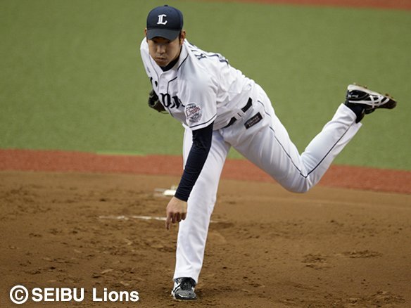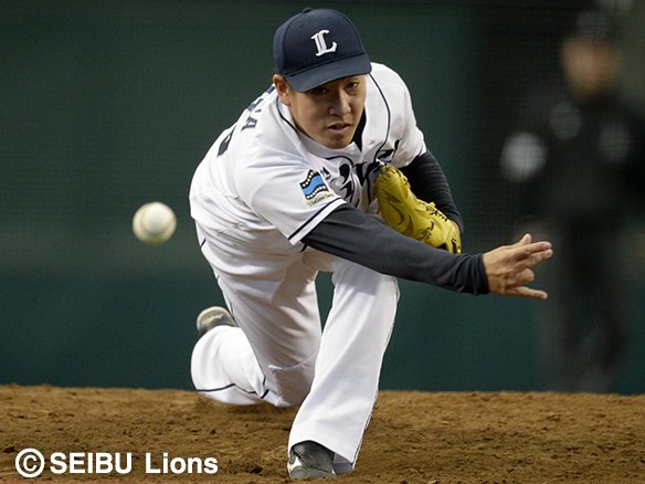 この回から登板した牧田は、緩急自在の投球で相手打線を翻弄しました! |