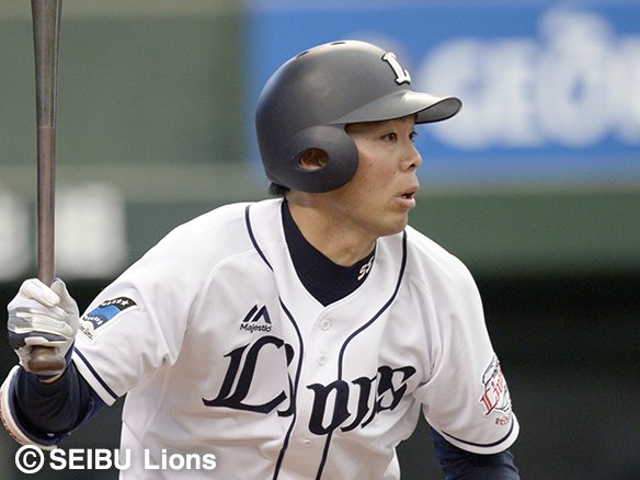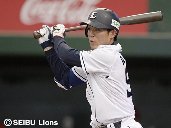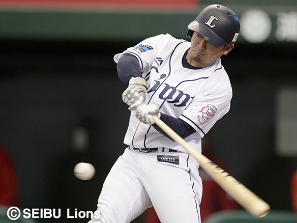 秋山が早くもこの日3本目となるヒットを放ちました! |