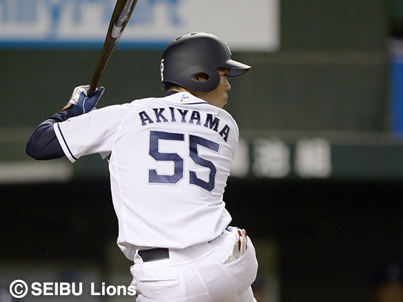 秋山が選球眼を生かし2打席連続四球で出塁!