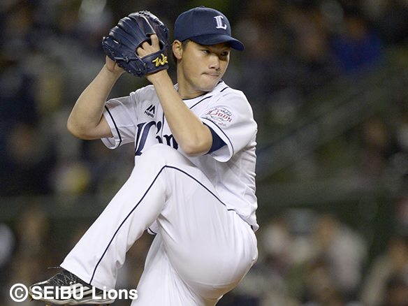 投手 菊池 9番 西野 左邪飛 ファウルフライを栗山(左)がつかんでバッターアウト 1アウト |