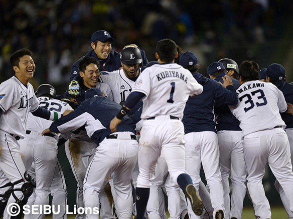 メヒアがサヨナラ打を放ち勝利を喜ぶナイン