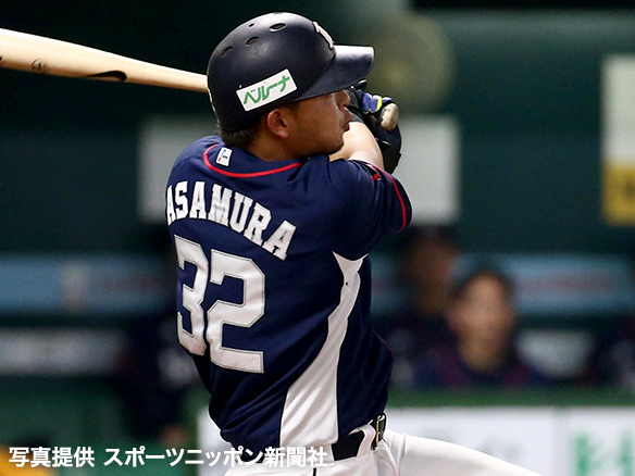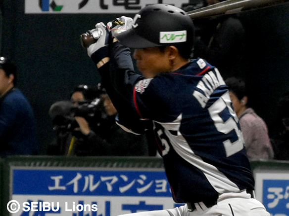 5番 浅村 左安 レフトへのヒットを放つ 1塁 |