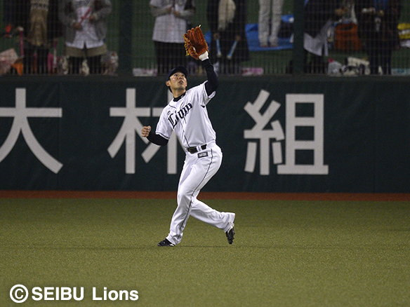 秋山は陽のフライを難なくキャッチ!
